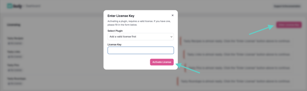 - Go to your WP Tasty dashboard page, then remove the license key for your Tasty plugin producing the error message. Here’s how to remove your license key, if you need additional help.