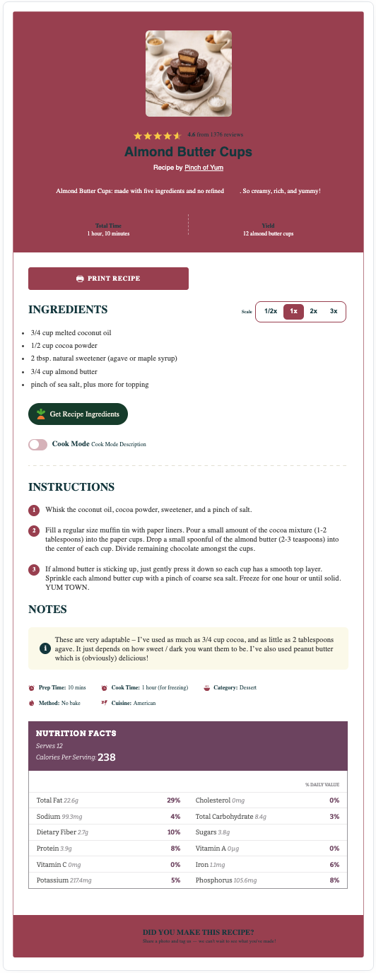 Our 2.0 templates are refreshed versions of our most popular recipe cards, featuring updated designs and modern styling. Each 2.0 template includes 3 unique variations that offer slightly different layouts and styling options, giving you even more flexibility to match your site’s aesthetic.